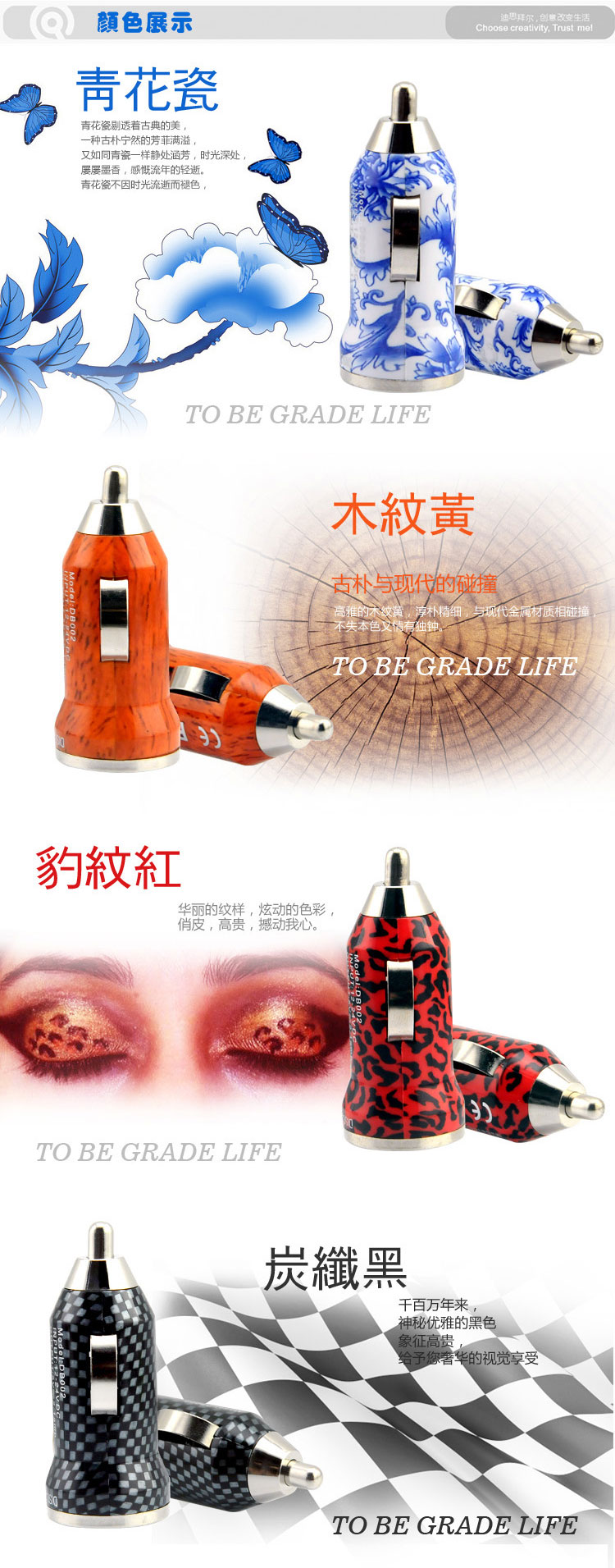 Color:blue and white porcelain/carbon fibre black/leopard printed red/wood-grain yellow