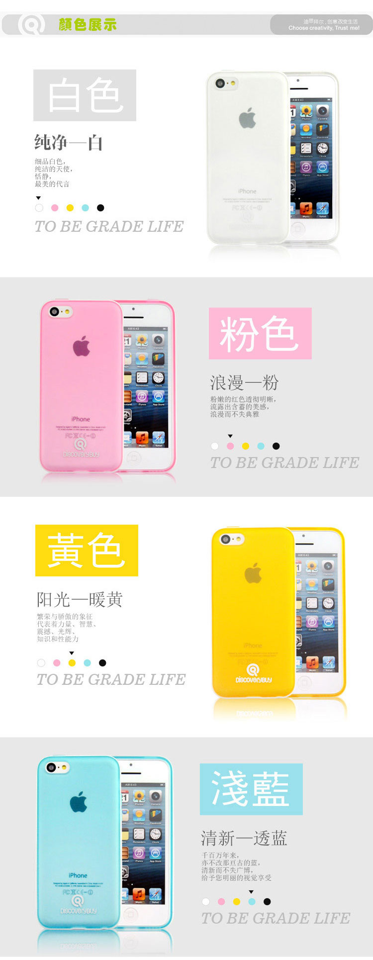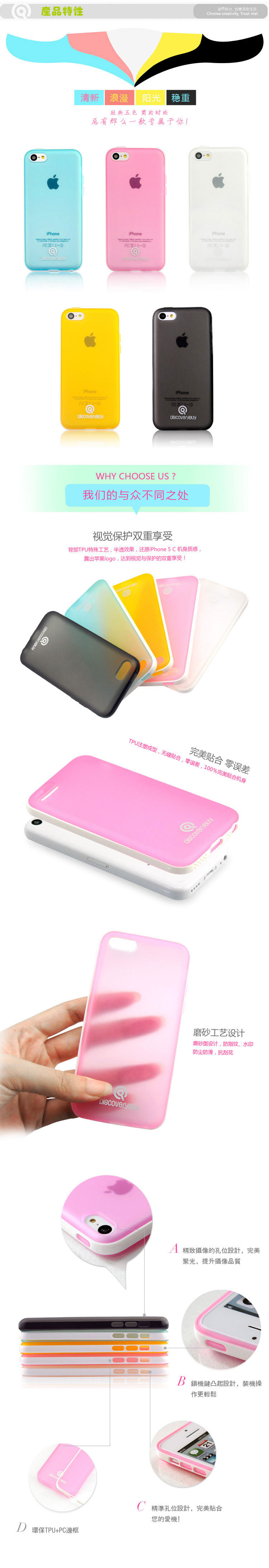 iPhone 5C![]() DiscoveryBuy iPhone 5C intelligent series dual color series protective case Suitable model:iPhone 5c Material: TPU(cover)+PC(frame) Features: 1. cover with matt design,anti-watermark, Anti-smudge and scratch,anti-falling and impact, shockproof. 2.ultra-think with only 0.4mm. 3.Detachable frame, can be DIY. Packaging:Exquisite box packaging ![]() ![]() ![]() ![]() ![]() ![]() ![]()