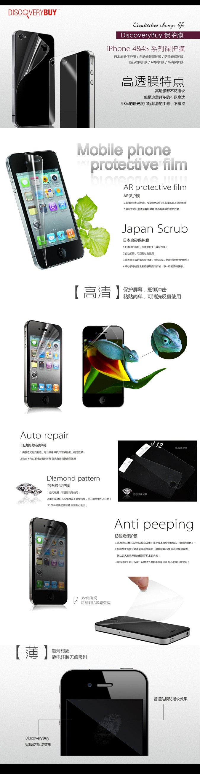 名称:iPhone 4&4S 自动修复保护膜